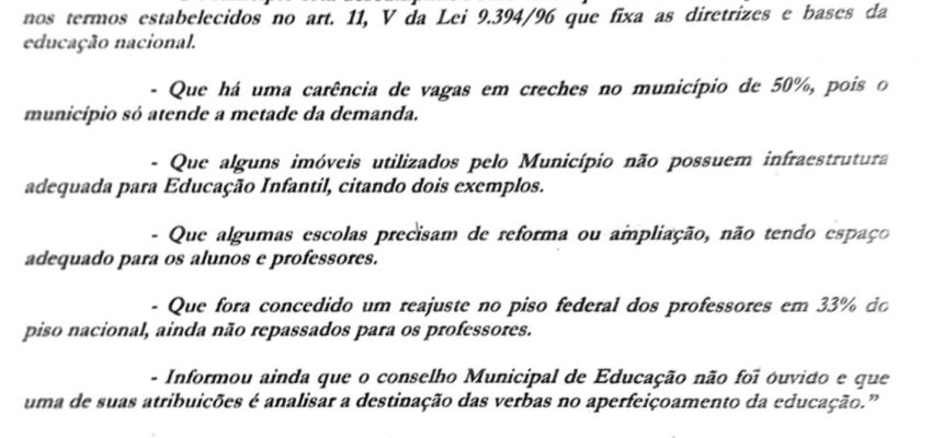 Conforme a publicação do Chefe do Executivo Municipal, a denúncia foi elaborada pelos assessores dos vereadores, e se acatada pelo MP, poderá fechar duas creches do município, deixando mais de 300 crianças em casa aos cuidados das mães.